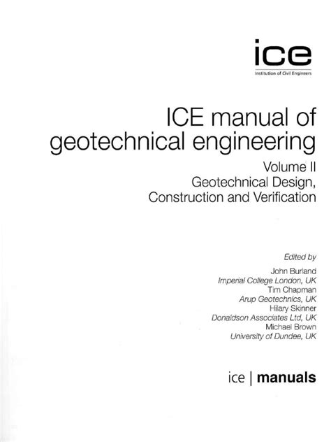 Pdf Download ICE MANUAL OF GEOTECHNICAL ENGINEERING FREE DOWNLOAD ebooks Free PDF